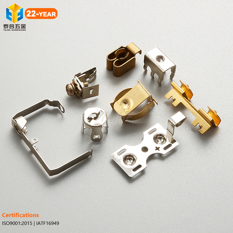 Métal de précision sur mesure emboutissant des pièces en laiton au béryllium cuivre argent ressort en acier batterie contacts de ressort à lames électriques